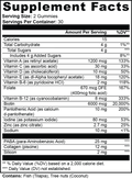 Ingredients: Vitamin A (as retinyl acetate), Vitamin C (as ascorbic acid), Vitamin D (as cholecalciferol), Vitamin E (as dl-Alpha tocopheryl acetate), Vitamin B-6 (as pyridoxine HCI), Folate, Vitamin B-12 (as cyanocobalamin), Biotin, Pantothenic Acid (as calcium d-pantothenate), Iodine (as potassium iodide), Zinc (as zinc citrate), PABA (para-Aminobenzoic Acid), Collagen (piscine), Silicon, Glucose syrup, Sugar, Glucose, Pectin, Citric acid, Sodium citrate, Passion fruit flavor, Vegetable oil (contains carnauba wax), Purple carrot juice concentrate.
